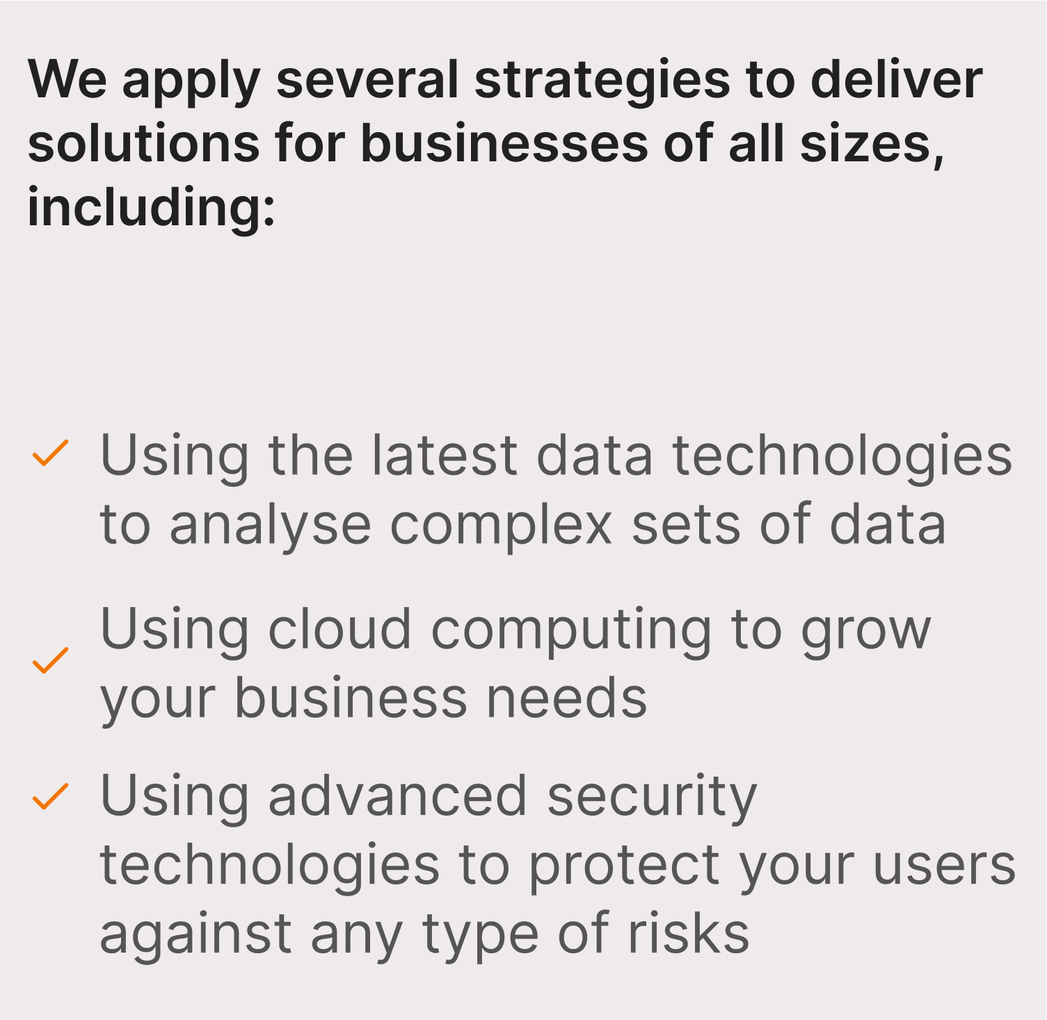 As an expertised and experienced company in technology advancement, we deliver businesses with transformative digital solutions that allow them to achieve business goals and excel in their field.